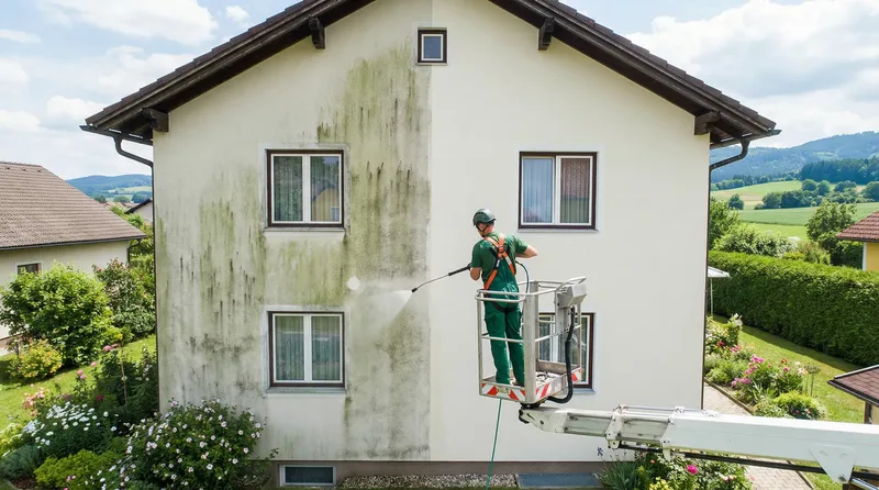 Eine professionelle Fassadenreinigung kostet in der Steiermark €3 bis €12 je m² – je nach Verschmutzungsgrad und Zugänglichkeit. Im Vergleich: Ein neuer Fassadenanstrich inkl. Gerüst kostet €40–80 je m². Reinigung statt Neuanstrich spart durchschnittlich über 70 % der Kosten.